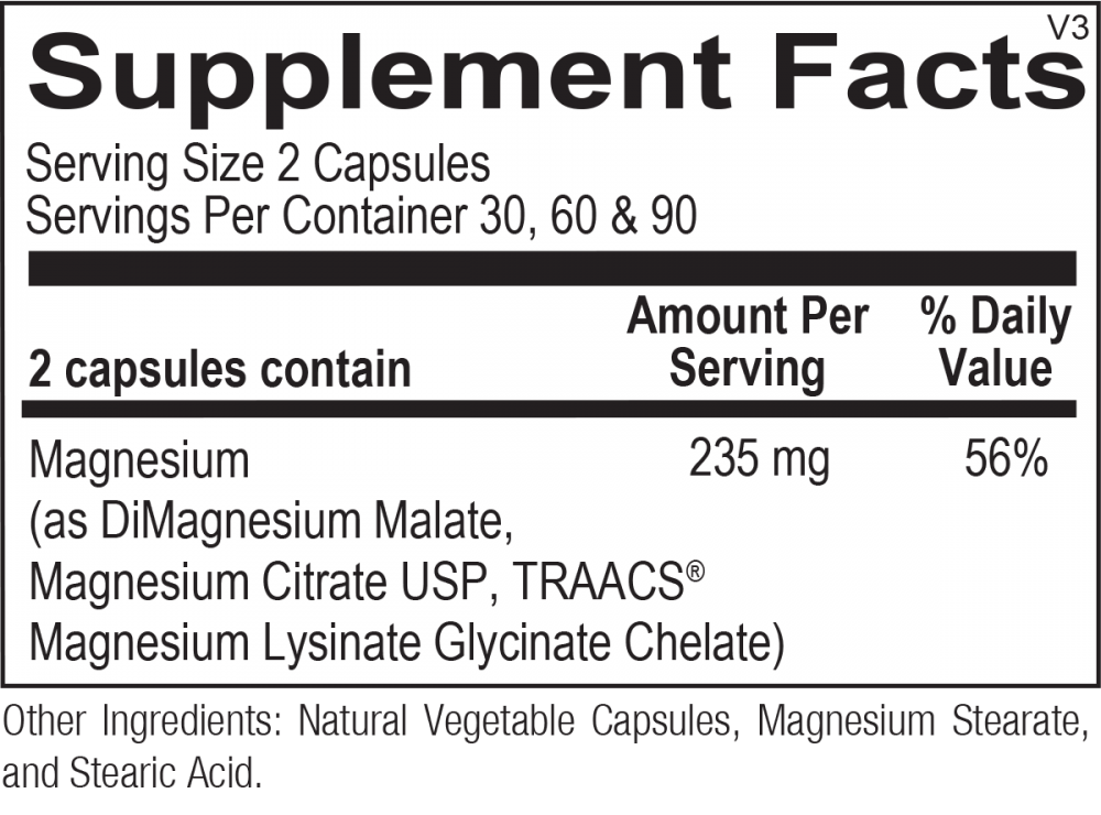 TRI . MAG takes advantage of three unique pathways of absorption by providing magnesium as di-magnesium malate, magnesium citrate and magnesium glycinate for enhanced absorption, improved utilization and gastrointestinal (GI) comfort. Some individuals, who take other forms of magnesium supplements, often experience GI side effects, including gas, bloating, diarrhea, constipation or a combination of these symptoms. The forms of magnesium used in TRI . MAG preserve GI comfort while maximizing absorption and restoring magnesium levels in the body.