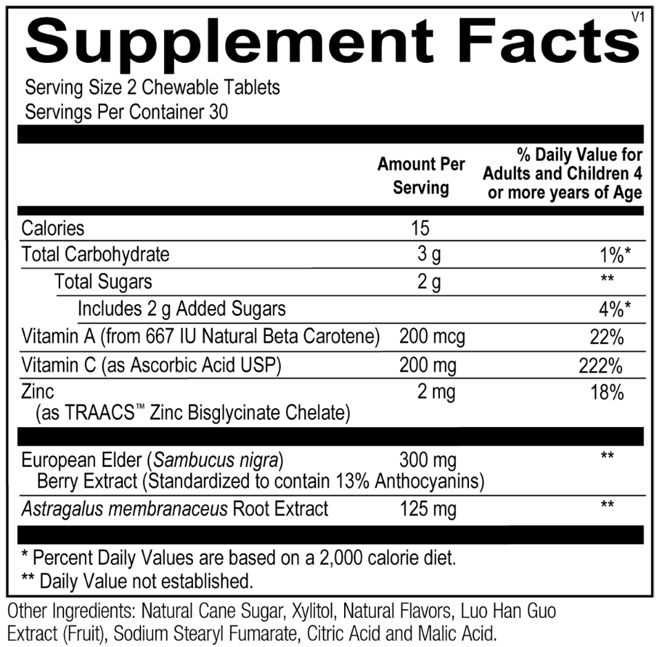 VIRAPRO KIDS is a children’s chewable formula that boosts immune function and provides support for immune challenges. VIRAPRO KIDS contains elderberry and astragalus along with key nutrients necessary for optimal immune function such as zinc, vitamin C, and vitamin A. Elderberry has been shown to provide effective immune support, and the distinct purple color creates a fun element for kids.