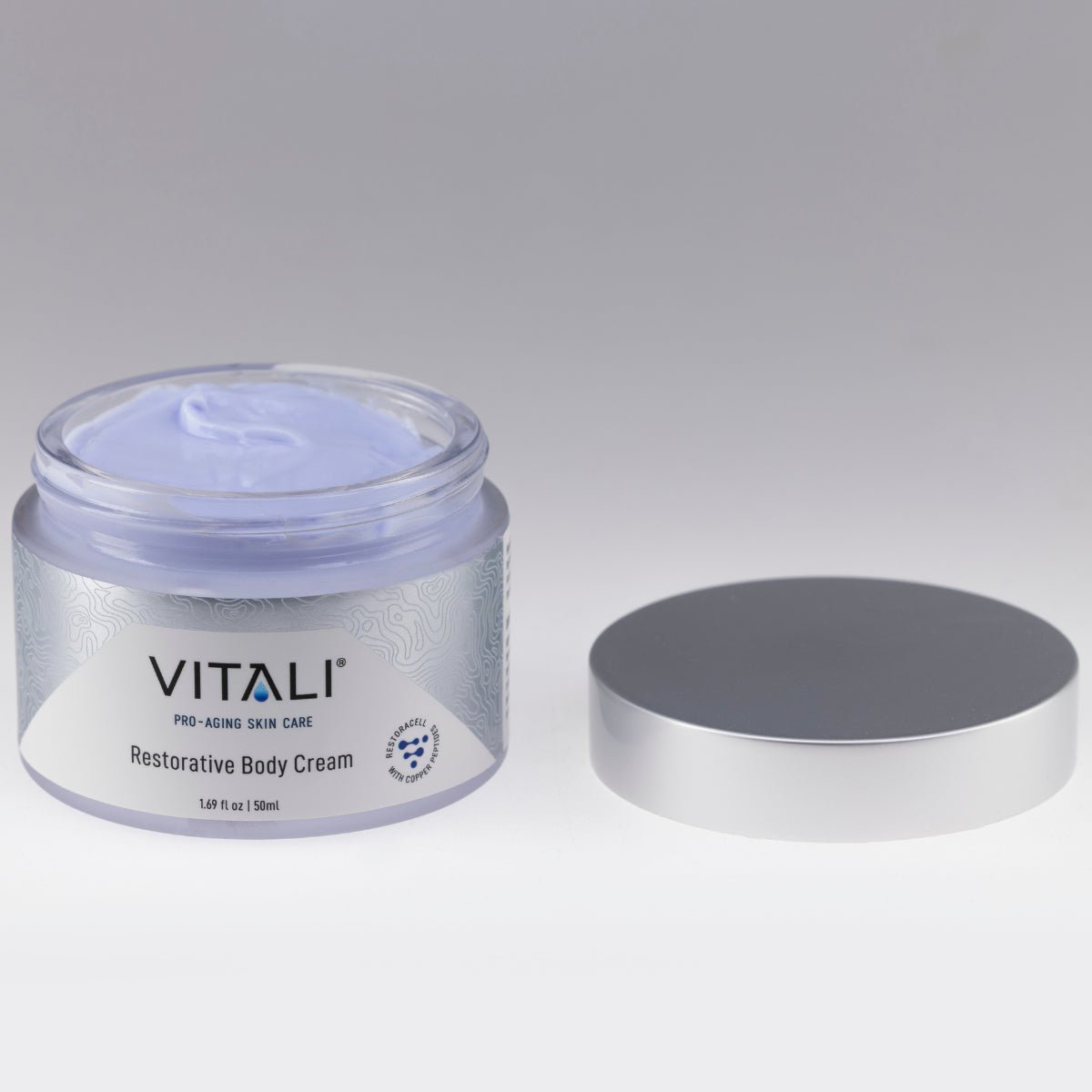 Vitali’s luxurious Body Cream combines restorative Copper Peptides with potent botanical ingredients that improve skin texture while replenishing skin and locking in moisture. Loaded with vitamins and antioxidants, Restorative Body Cream is a soothing barrier to the skin and nourishes without feeling heavy.